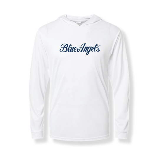 Sublimated Blue Angels Script Performance Hooded Long Sleeve
